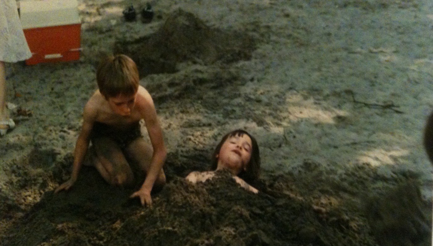 De confrontatie met deze foto, met mezelf in deze situatie maakt me ongemakkelijk. Hoe kan het dat ik op de grond lag onder een hoop zand en zonder mijn handen te wassen of te douchen mijn kleren weer aantrok wanneer het tijd was om huiswaarts te keren? Hoe kan het dat ik zonder aarzelen de auto instapte en tevreden in slaap viel zonder enige spanning? Meer nog: hoe kan het dat ik de dag nadien, na een nacht vol zoete dromen, fris gewassen, verse kleren aan, plaatsnam op dezelfde plek in de auto, zonder me van het ene op het andere moment ‘vuil’ te voelen omdat ik daar als strandzombie gaan zitten was de dag voordien?