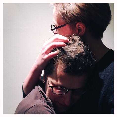 Ik merk pas echt op hoe zenuwachtig mijn lief is wanneer twee verpleegkundigen haar komen oppikken voor de rit naar de operatiekamer. Kaatje interpreteert “Kruip maar onder de lakens” nogal letterlijk en wil verdwijnen onder de steek. De spanning wordt weggelachen.