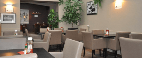 Het was even speuren op het internet vooraleer ik een foto van het oude interieur terugvond. Weliswaar met andere stoelen dan de zwarte houten van vroeger, maar met Sie Kommen nog steeds tegen de wand, verscholen diep in het restaurant in Onderbergen.